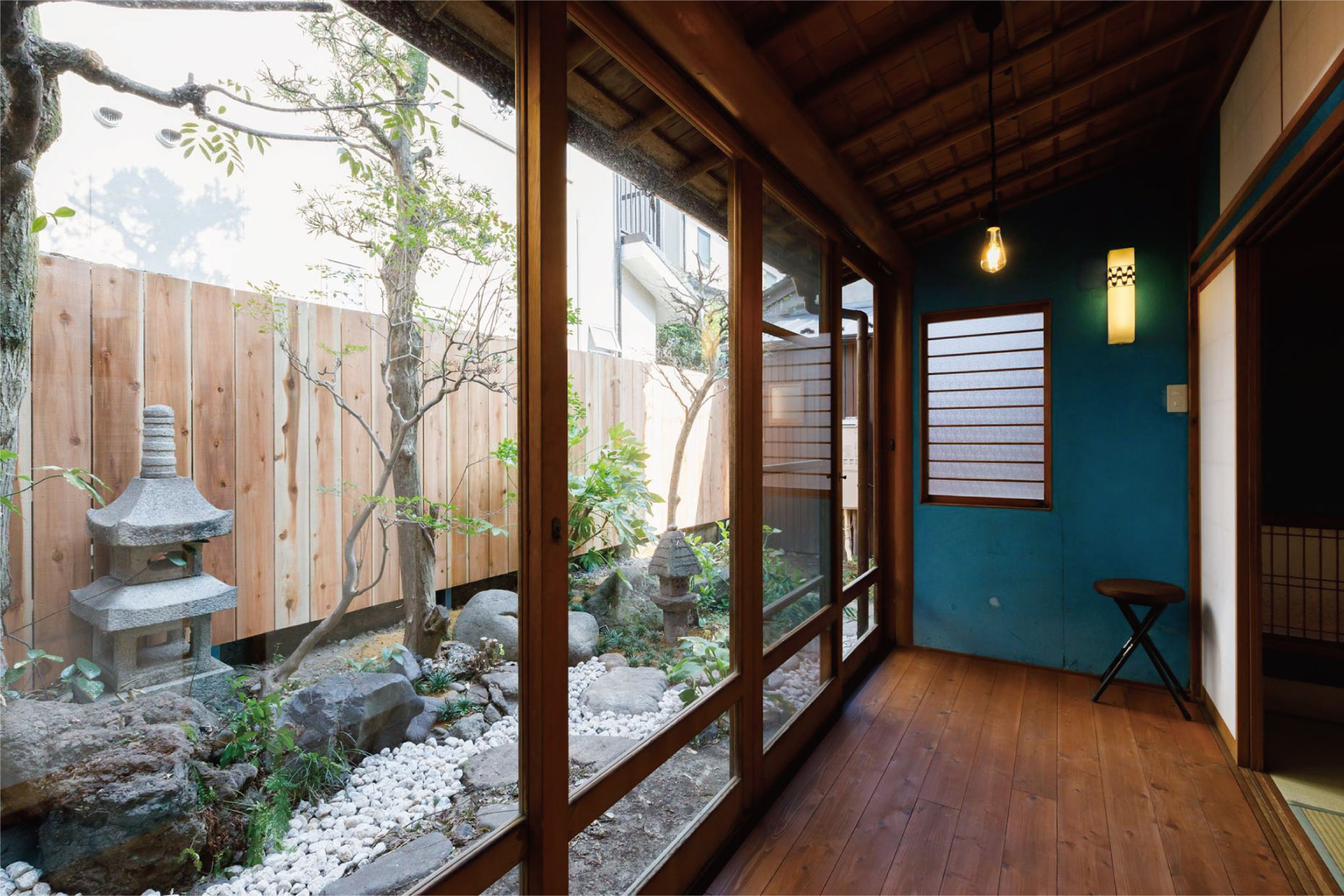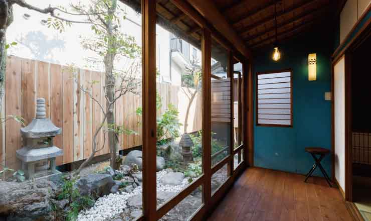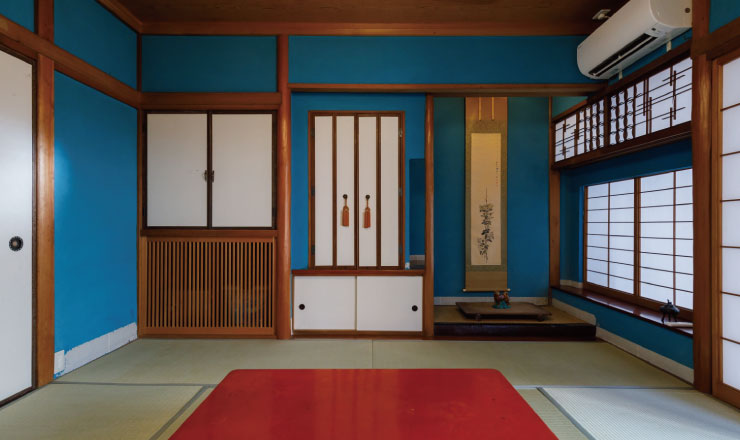 1F「群青の間」はターコイズのような金澤町家にはめずらしい青み。